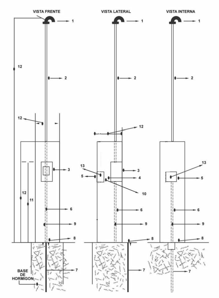 Ref. 12 Medida específica de pilar. a) monofásica: alto 1.80 mt. – ancho 40 cm. – profundo 40 cm. b) trifásica: alto 1.80 mt. – ancho 60 cm. – profundo 60 cm.